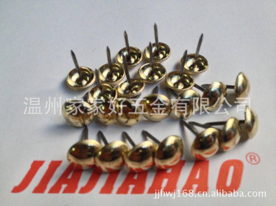 泡钉是安装在鞋子、箱、沙发泡钉,包的底部,使箱、增加底部免受磨损、装饰鞋钉。泡钉因钉头有一小圆形铜泡而得名,是固着铜饰件用的钉子。产品【材质:铜,铁,电镀:古铜、仿金、镀镍,表面处理还有喷漆,烤漆等