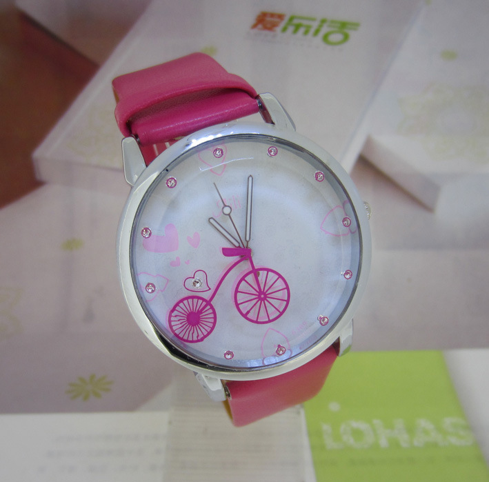 供应热销便宜皮带表 女士手表 淘宝货源卡通图案皮表 学生爱