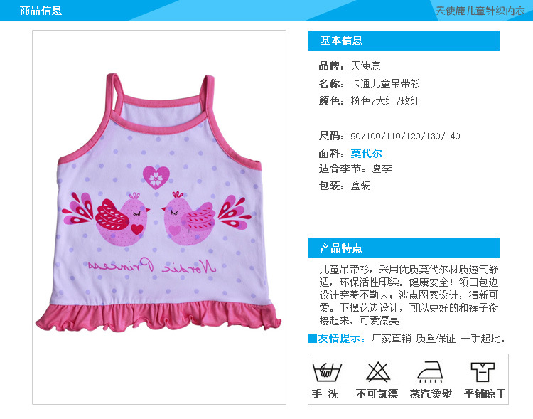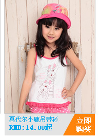9.4备货节 天使鹿童装 2013新品女童莫代尔吊带衫 波点小鸟