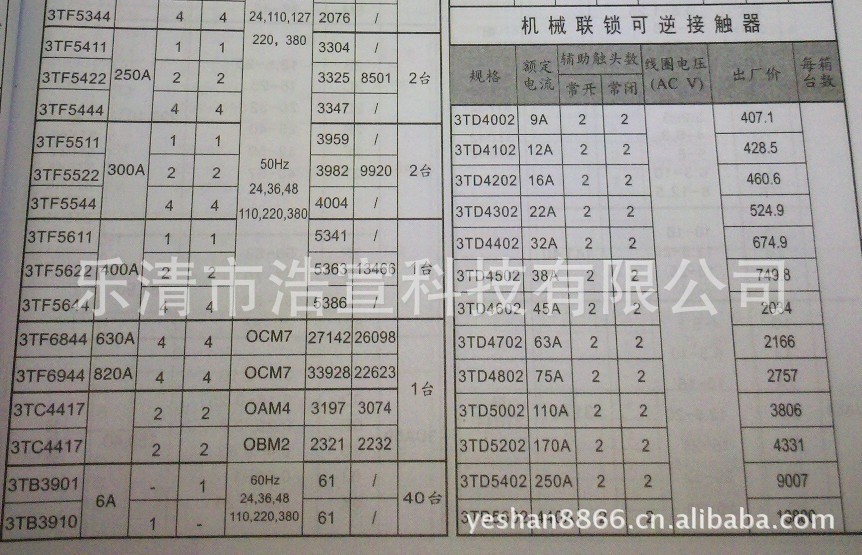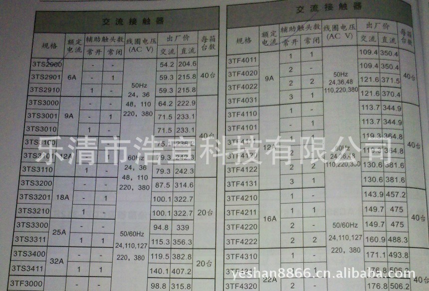 注:西门子交流接触器具体价格,请用旺旺或者电话 13989767759叶小姐 咨询!