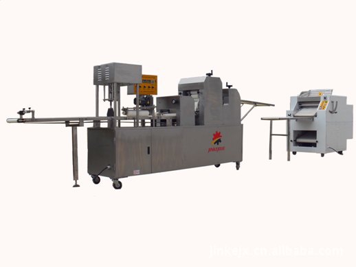 该机组是由擀面主机和JKQ-320全自动压面机组成,通过全自动压面机采用“双螺旋机构”自动连续完成面带的折叠和扭转,再经过三道挤压,来提高面团延展性和光泽度,且增加面皮的筋度和细密度。最后传输到擀面主机,采用压制仿手擀工艺,使面皮更有光泽、成品表面极为光亮,外形美观。整个过程全自动控制,性能稳定,操作简单。所切产品的长度可调。