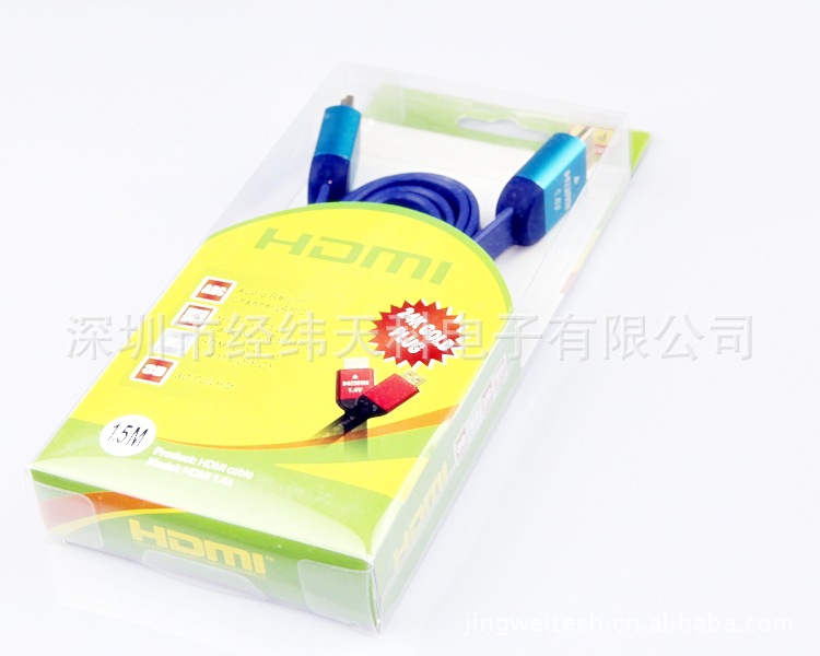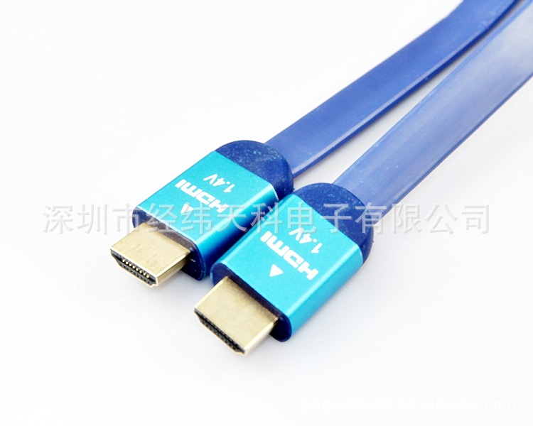 品名:1.4版 HDMI高清线 四方金属壳 蓝色扁线 镀金头 3D连接线