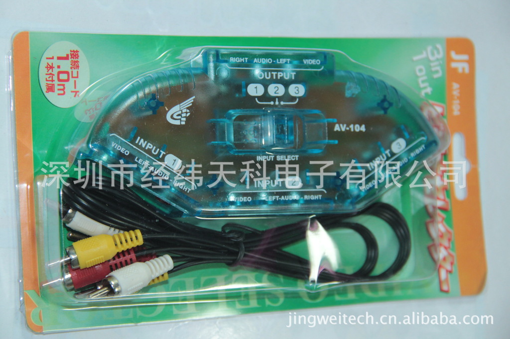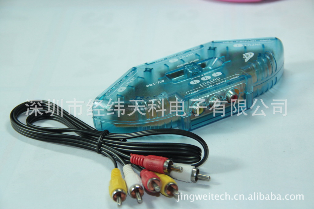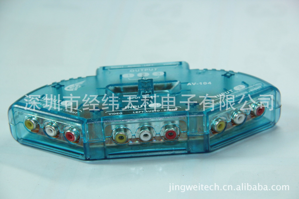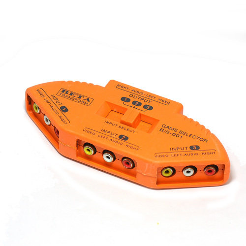 产品特点:家中想连接多台影音器材。但电视机输入讯号源端子不足,讯号连接线经常拔来拔去,很不方便。家中小孩想要连接多台电视游戏机同时使用。可切换3组AV影音讯号输入,1组输出至电视使用,DVD、VCD、TV GAME、VCR、选台器、卫星电视、摄影机...等,上方之接手动切换,免插电设计,安装迅速,使用方便。
