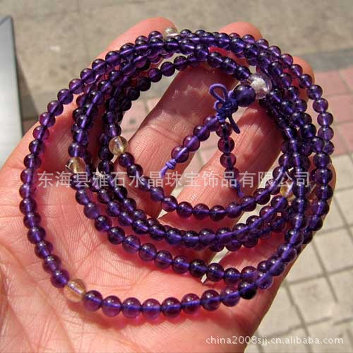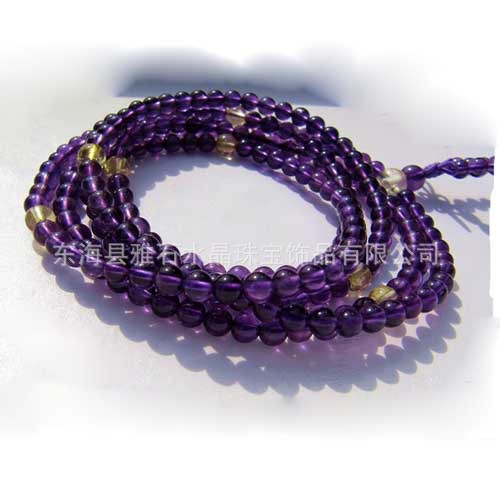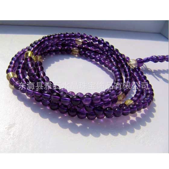 【名称】 天然紫水晶+金发晶216颗佛珠手链