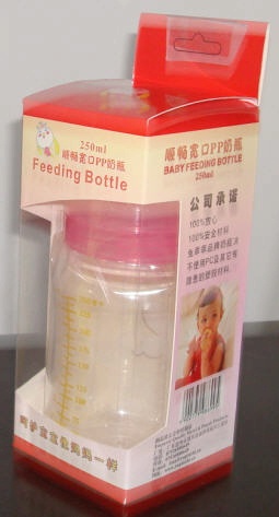 - 本品采用进口食品级无毒、无味材料聚丙烯(PP)注吹而成,具有质轻透明,内颈平滑,易清洗,不易破裂,可耐高温煮沸消毒等特点,确保宝宝安全健康,使用方便.