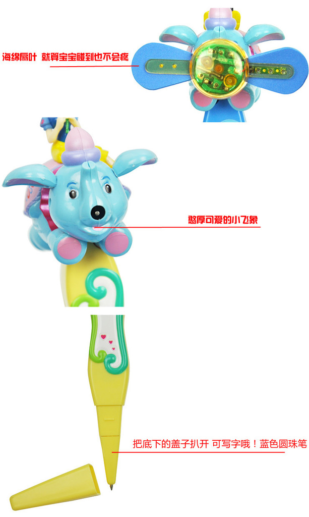 描述:可以写字形的大象风扇,在笔身的背部对准正负极放入一人5号电池按