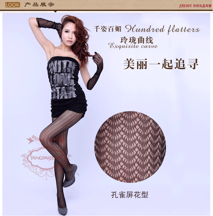 TANGPAI唐派遵循简约、环保、舒适的设计理念,全新推出性感高弹网袜,其原料采用比发丝还轻柔的高科技超细纤维全弹性丝织造,质感绵密细致,触感细滑如丝,视觉高雅,耐用耐磨程度高;独特的花型设计,完美体现出您优雅性感的气质!