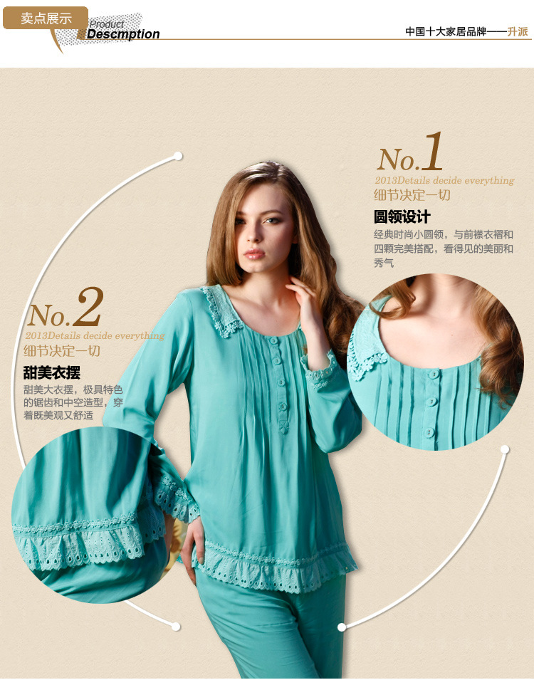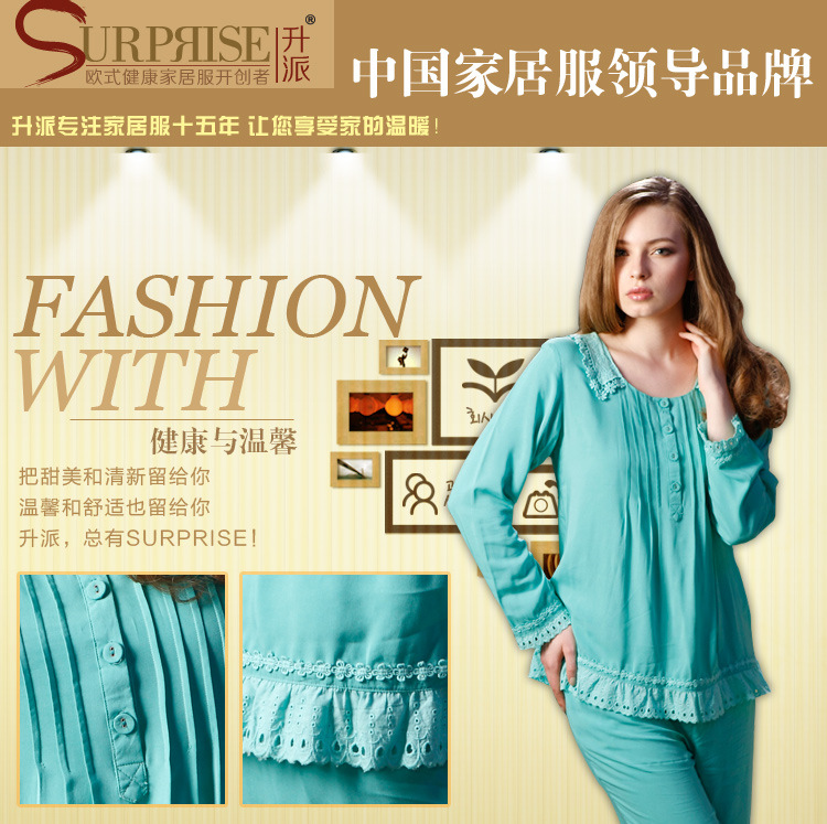 升派春秋季新款时尚家居服 2013正品全棉长袖大码居家服睡衣套装