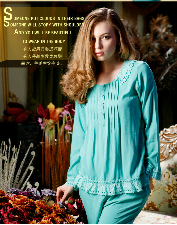 欧美风格家居服女士吊带长袖纯棉睡衣两件套连衣睡裙厂家直销