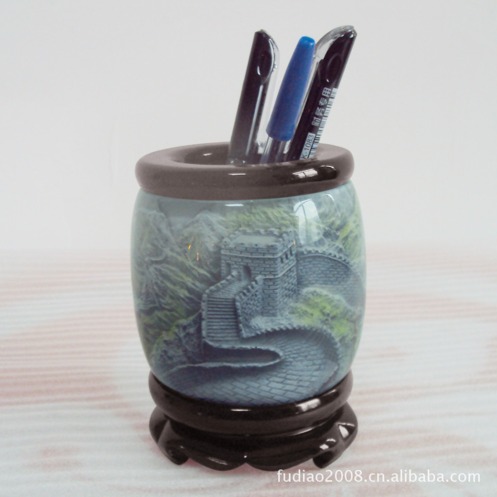 笔筒是知识与身份、金钱和地位的象征,能反映出人的权威,对事业的腾飞有很大的作用。在众多的文房用具中,除笔墨纸砚外,笔筒同样引起了文房用具收藏者的青睐。作为一种既有艺术价值又有使用价值的工艺品,它正得到越来越多的人喜爱。笔筒是中国古代除笔、墨、纸、砚以外最重要的文房用具,深受文人墨客的喜爱。笔筒发展到今天,它的制作材料是多种多样的,有陶、木、竹、金属、象牙、玉等,可谓是形态各异;规格从只能放一支笔到可以放多种日常用具。在笔筒内外壁雕刻和画上各种吉祥物图案,表现出各式各样吉祥物寓意,给人们带来吉祥之气.....