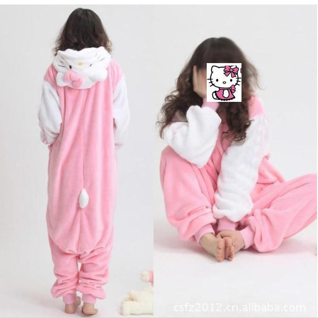 春秋冬豹纹KT猫珊瑚绒可爱卡通连体睡衣特价情侣款家居服冬季加厚