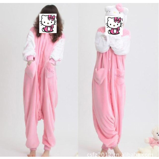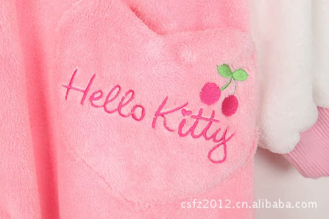 日本SANRIO原单HELLOKITTY猫卡通珊瑚绒连体睡衣家居服低价热卖爆