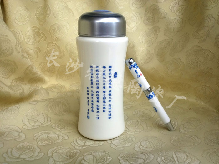 材料:笔(陶瓷)、保温杯(骨瓷)