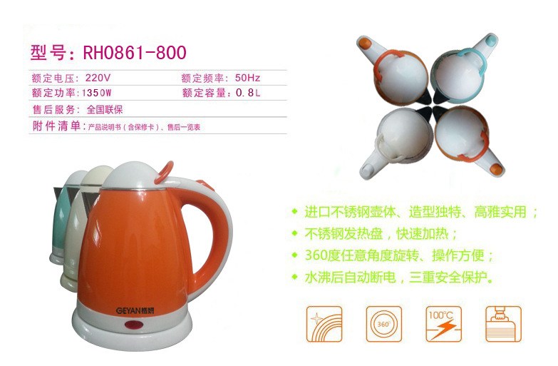 ·在北方硬水地区的用户应定期为水壶除垢,可用醋或电解食盐水(次氯酸钠)浸洗。