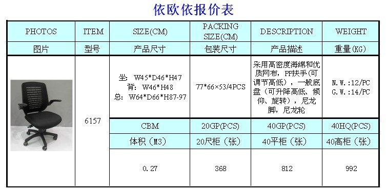 1、 椅面/椅背 采用进口台湾颐达优质网布,经过多层处理,符合BIFMA1级 网面色泽度好,透气强,柔韧且富有韧性,厚度适中,具有冬暖夏凉的效果且手感良好。 2、 坐垫和背垫 具有透气性强,不易变形,不老化,依人体坐姿,符合人体工学耐水及对人体无害等优势。 3、扶手 选用PU扶手面,软硬适中,手感舒适。 4、 底盘 提供蝴蝶底盘,可保护使用者长时间坐用腿部健康,且作为高度可多定位调节、任意旋转,而方可大幅度倾仰。 5、 气压棒 使用进口10进程气压棒,具有BIFMA认证,可升降数万次,将椅面调至膝盖同高时,使用者坐下后双脚跟可垂直平放于地上,且大腿与地面平放,最符合人体工学理论,使用者长期久坐,也不会感觉疲惫。 6、 椅脚 选用优质尼龙五星脚或铝合金五星脚,外向尼龙脚轮或PU轮。 款款历时长新的设计,充分演艺人体工学原理及唯美设计思维,令外形与功能高度统一。 【颜色】:颜色方可提供多种颜色;如图仅供一个参考。 【等级】:中高档办公家具,国内外热销产品。 【库存情况】:一般都没有现货,具体的咨询我司的客服。 【包装及安装】:椅子纸箱包装,只需要简单的安装。 【产品细说】:根据人体工程部原理设计,背部流线造型设计,使工作变得轻松,即使长时间工作也不易产生腰酸背疼的感觉,人性化设计有益健康。 软轮设计:不易损坏、脱落,不毁坏地板、地毯、地砖。