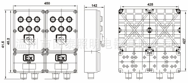 2.控制箱由增安型外壳,隔爆型元件(指示灯、电流表、按钮、开关)及接线端子等组成。