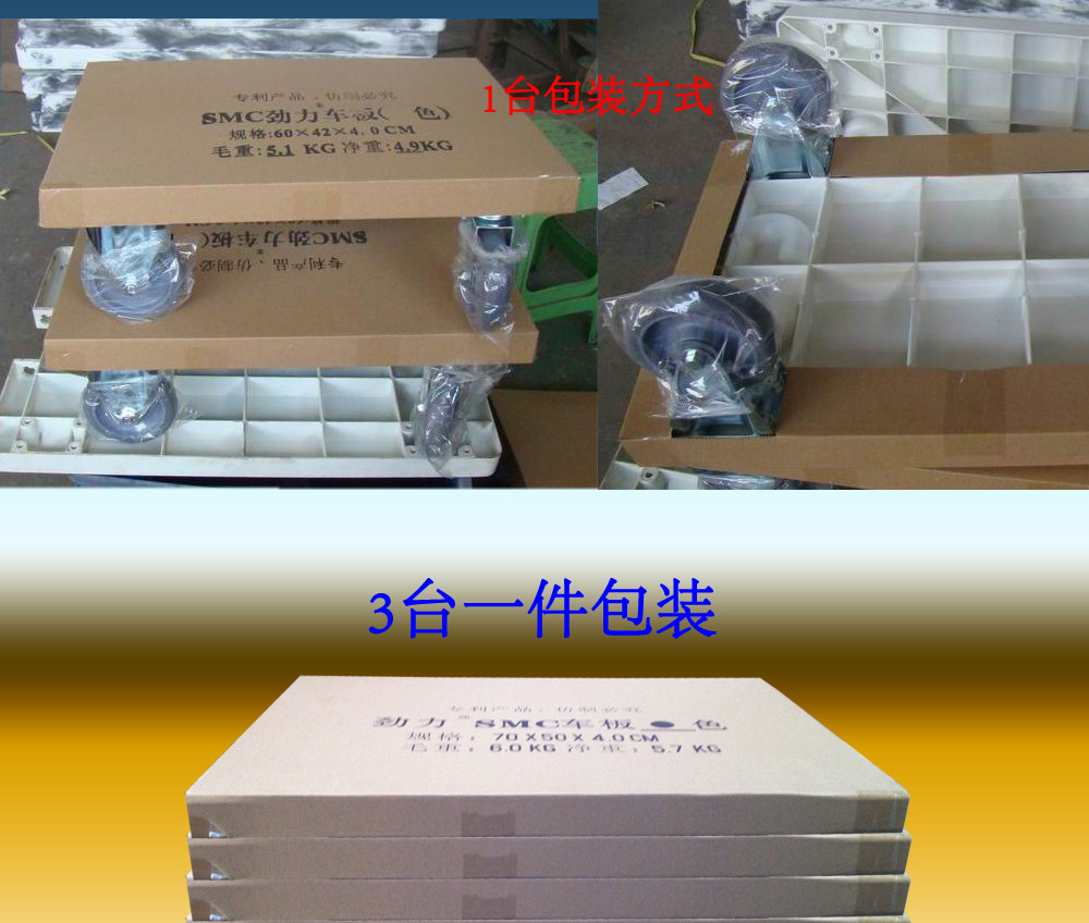 1、加强了底部和加力筋条,整车的坚固和承重相应提高,我们所标注的承载量是真实有效的。 2、车的把手设计:活动单杆车手随人体的高度可自由调作。作用力自然用于作用点。可推可拉、耐用、顺手、灵活。最大地改变了作用点,使其不会扭坏车面板及连续部件,大大提高产品使用寿命。 3、车面板设计:有四个可供车架叠放时固定轮子的装置,车手折合平放于车面板凹槽中、板面平整。可作地板车使用。为用户减少大量存放空间, 为供销商节省运输成本。 4、大规格托盘车:可当作高楼层移动仓库,通过工厂货梯可把托盘车直接拉到装卸地点,配合叉车升降,最适合于大型货柜车的货物装卸。在电梯及货柜内狭窄空间,可原地旋转。轻松省时省力。 5、中规格周转车:不单用于货物搬运,装上铁网筐或周转袋是任何环节生产线不可缺少的转运工具。 6、小规格物流车:适合于公司、工厂、商场、档口小宗物品的接送。 7、物竟天择,高品质为用户带来实惠,本公司劲力®牌SMC手推车功能齐全、奢华实用、材质30年不变,让客户买得放心用得省心。