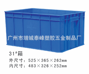 浏览次数:333 产品名称:31#箱 产品颜色:蓝色 产品规格:外尺寸:525x365x262 mm 内尺寸:483x326x252mm 备 注:产品外观以实物为准图片仅供参考。 用途:可应用于玩具、鞋业、皮革类、制衣、装配业、储存、运输等行业