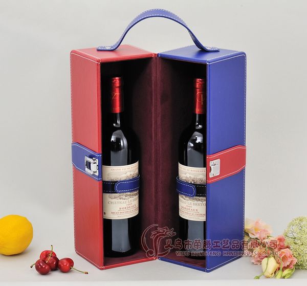 新款双支装红酒皮盒 葡萄酒包装盒 礼盒包装 荣腾工艺