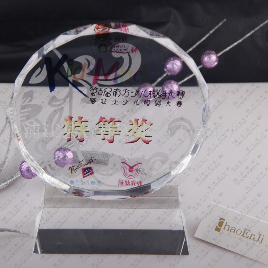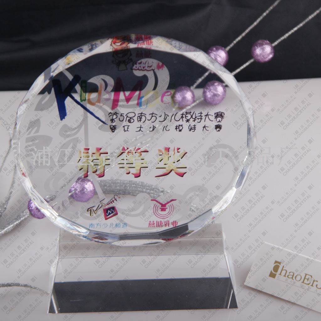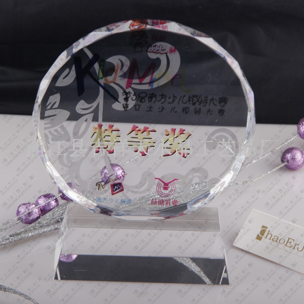 本厂为直接生产厂家,产品货真价实,均采用水晶K9江苏一级料制作。精雕细磨,工艺纯正,质量保证,可根据客户的要求喷绘各种文字和图案。