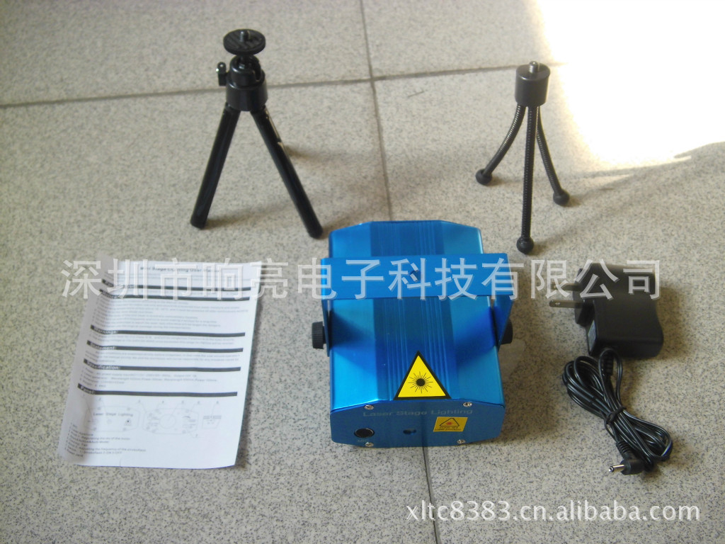 一、所有配件:1.激光灯一台;2.交流电源适配器一个;3.说明书一份;4.三脚架一个