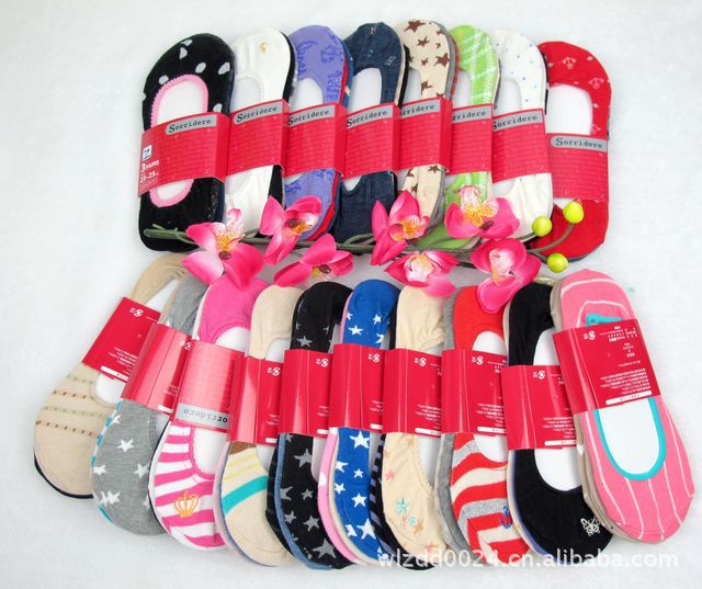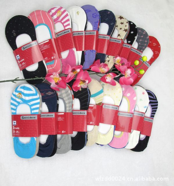 日单精品女士船袜,棉袜,柔软舒适,花型多都很漂亮。三双一卡,平均零售价不低于15元一组