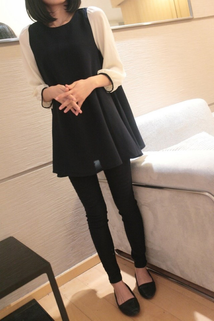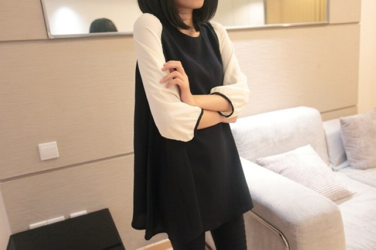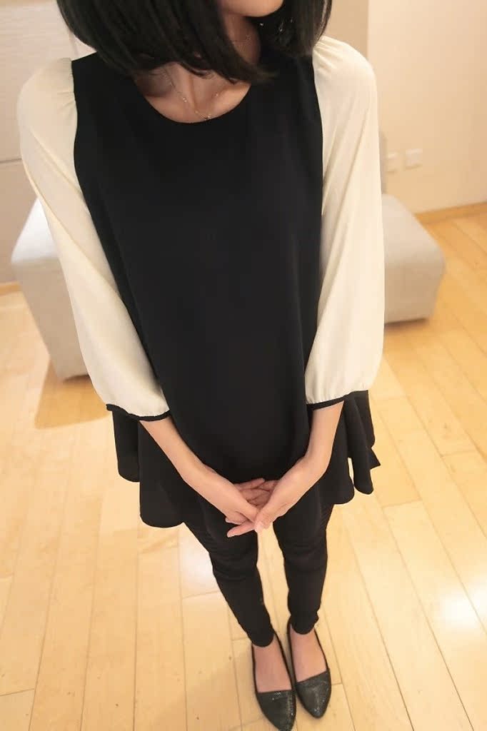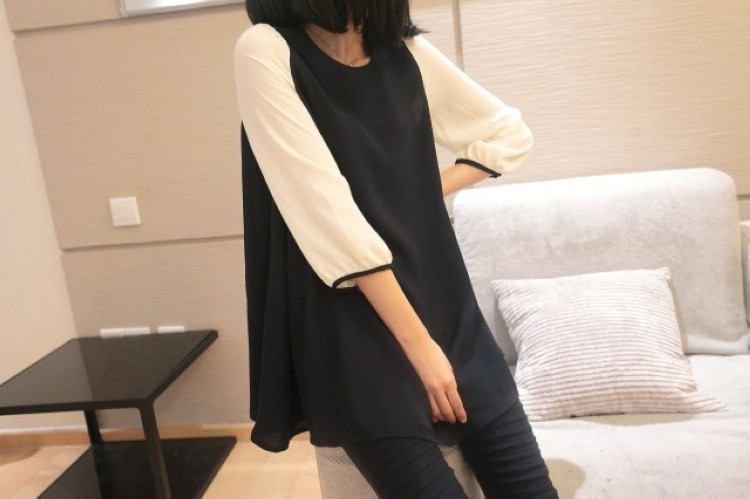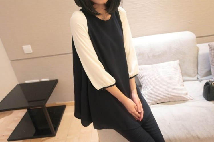 2013春夏季新款日系风格中长款泡泡袖雪纺连衣裙胖瘦都好穿批发
