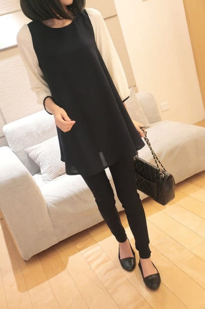 2013新款韩版弓字无袖背心马甲黑白夹条中长版女装连衣裙