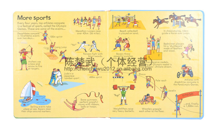 这是一本很AMAZING的书!!儿童科学、教育类销量榜前10名!大开本,精装,每页的内容很多的,最特别的是,带有很多小立体翻翻机关,有些翻翻页打开后变很大,还有些是立体翻翻页。。加深对运动会的理解,培养孩子的广阔视野,USBORNE的迷不能不收此书!!