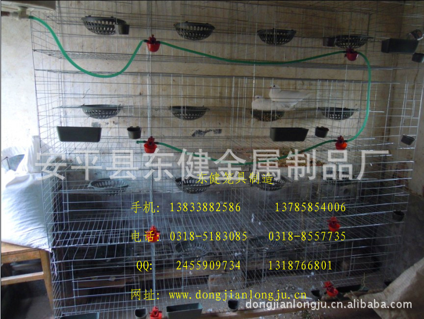 3.我厂主要生产经营养殖笼具及养殖用品:四门蛋鸡笼,五门蛋鸡笼,肉鸡笼,鸡用配件(饮水器、食槽、PVC水管、减压水箱、架子),三层鸽笼,四层鸽笼|新型四层鸽笼|四层肉鸽笼|四层鸽子笼|四层鸽笼厂家,鸽用配件(砂杯、食盒、蛋窝、自动饮水器、自动食槽,塑料水管、托粪板),九位铁丝底种兔笼(母兔笼),九位竹板底种兔笼(母兔笼),12位商品兔笼,12位铁丝底仔母兔笼,12位竹板底仔母兔笼,24位商品兔笼,兔用配件(水嘴、料盒、草架、托粪板),运输笼具。