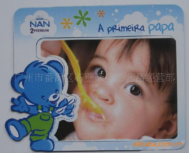5)磁性相框:采用软胶磁铁裱铜版纸彩色印刷腹膜,中间冲切相框制作而成。或是按照客人要求制作双层相框,PVC相框,纸板相框等各种材质的相框。