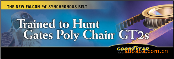 美国固特异公司为盖茨Gates Poly Chain GT2系列(保力强)同步带使用客户专门设计了可与Gates Poly Chain GT2(保力强)同步带相互替换的同类皮带:固特异新鹰牌(Falcon PD)同步带(例如:Goodyear 8GTR-640-21 = Gates 8MGT-640-21)。与其他同类皮带相比,固特异Falcon同步带具有低成本高性能的特点,为客户提供了另一个更好的选择。Falcon同步带特别为高难度的高转矩应用所设计,由具有专利技术特殊合成橡胶制成,它的承载能力强、耐热耐冷、耐油耐臭氧,且强力线采用防弹衣使用的材料。因Falcon 同步带采用的是特殊橡胶来做主体材料,所以它的弯曲性能比其他同类皮带好,大大延长了皮带的使用寿命,在同等条件下使用,Falcon 同步带的使用寿命更长、噪音更小、动力更大、成本更低。