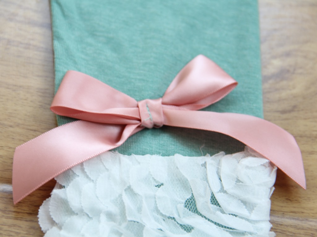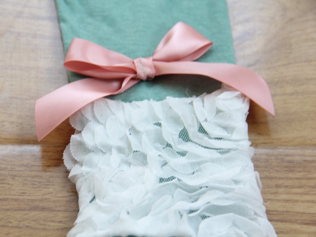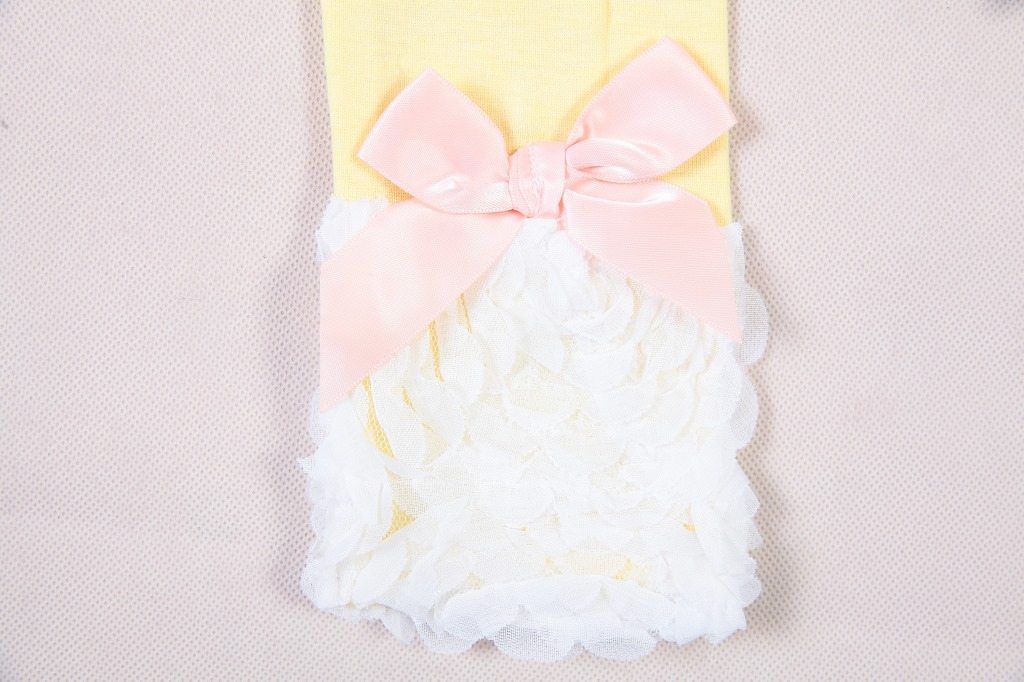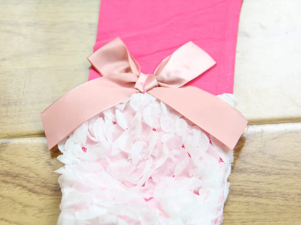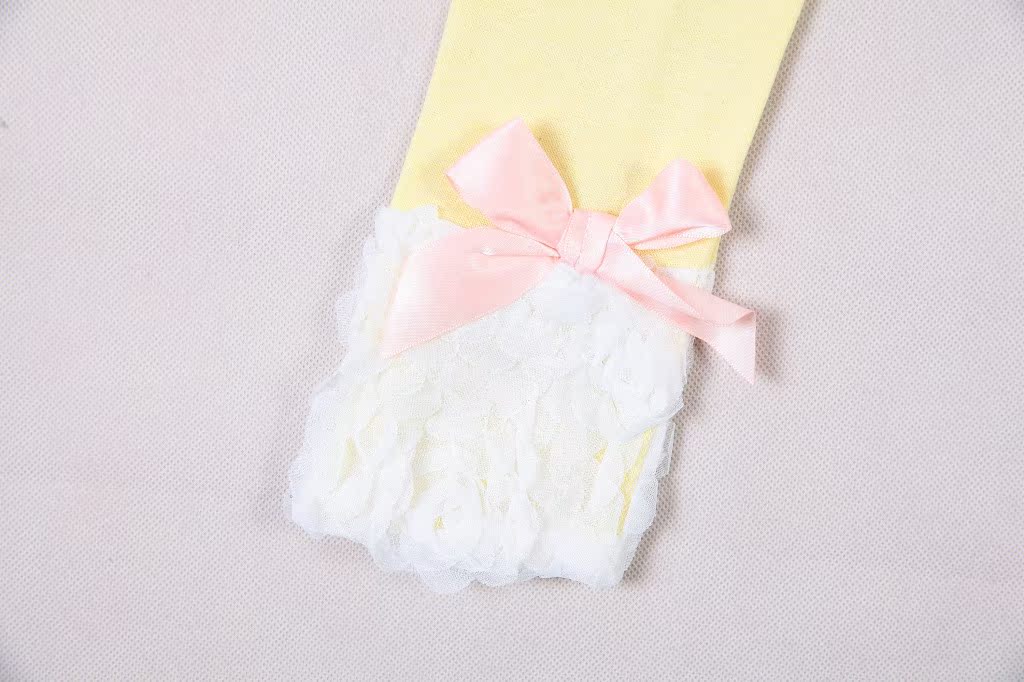 裤腿蝴蝶结下面为长约10cm的蕾丝拼成的大朵玫瑰花,非常甜美哦!