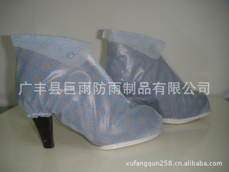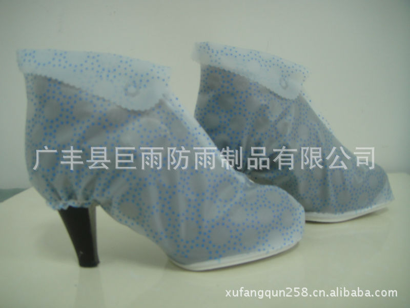 防雨鞋套是近年来才出现的一种新产品。它结合雨胶鞋和-次性塑料鞋套的功能设计而成。这种鞋套比雨胶鞋轻便、方便。在雨雪天气里,将这种鞋套套在鞋子外面,不用换鞋,就能达到防水、防泥、保护鞋子的目的。它穿在鞋子外不变形、不脱落、不打滑。比一次性塑料鞋套耐穿,可回收、可降解、可反复使用,取代一次性鞋套对环境的影响,室内室外都可穿用。同时它便于携带,便于清洗,便于收拾。该产品美观时尚、便于携带,既解决了传统套鞋,笨拙不易携带的问题。又弥补了一次性鞋套不耐磨、不耐用的缺陷,是人们在雨天出行或在旅游景点突遇降雨时最有效的护鞋用品。防雨鞋套成为除了雨伞外的第二件亲民雨具,已成趋势。