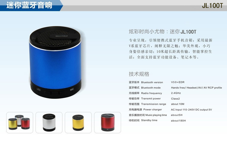 迷你蓝牙音响JL-100T新品上市公告