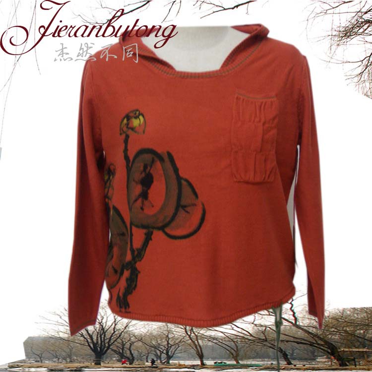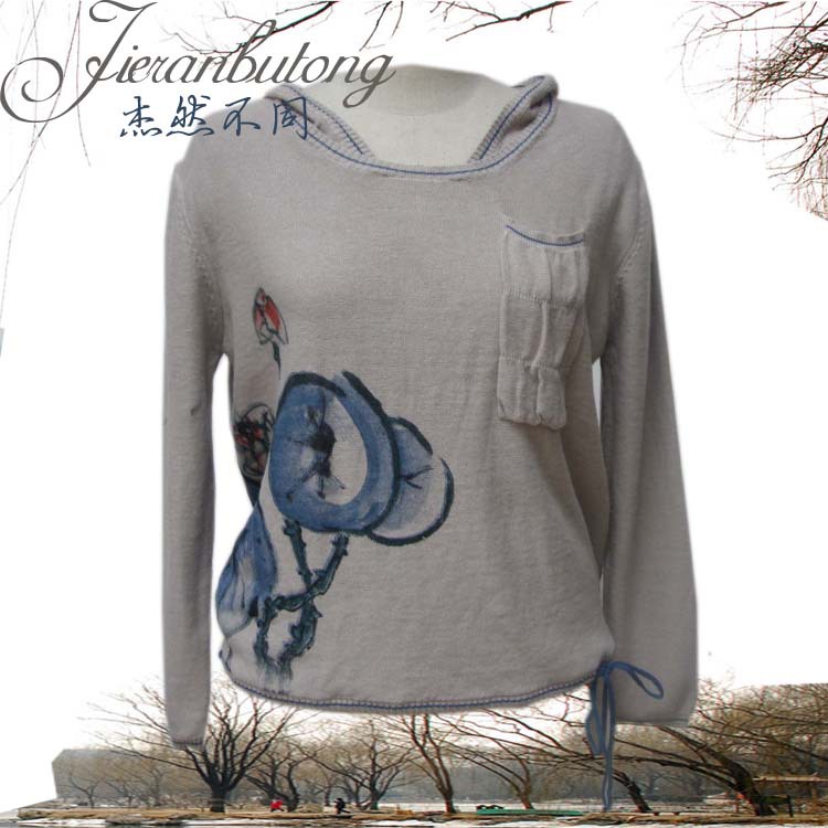 | 高档女装2013秋款欧美风系列 女式长袖荷花图案针织套头毛衣626 |