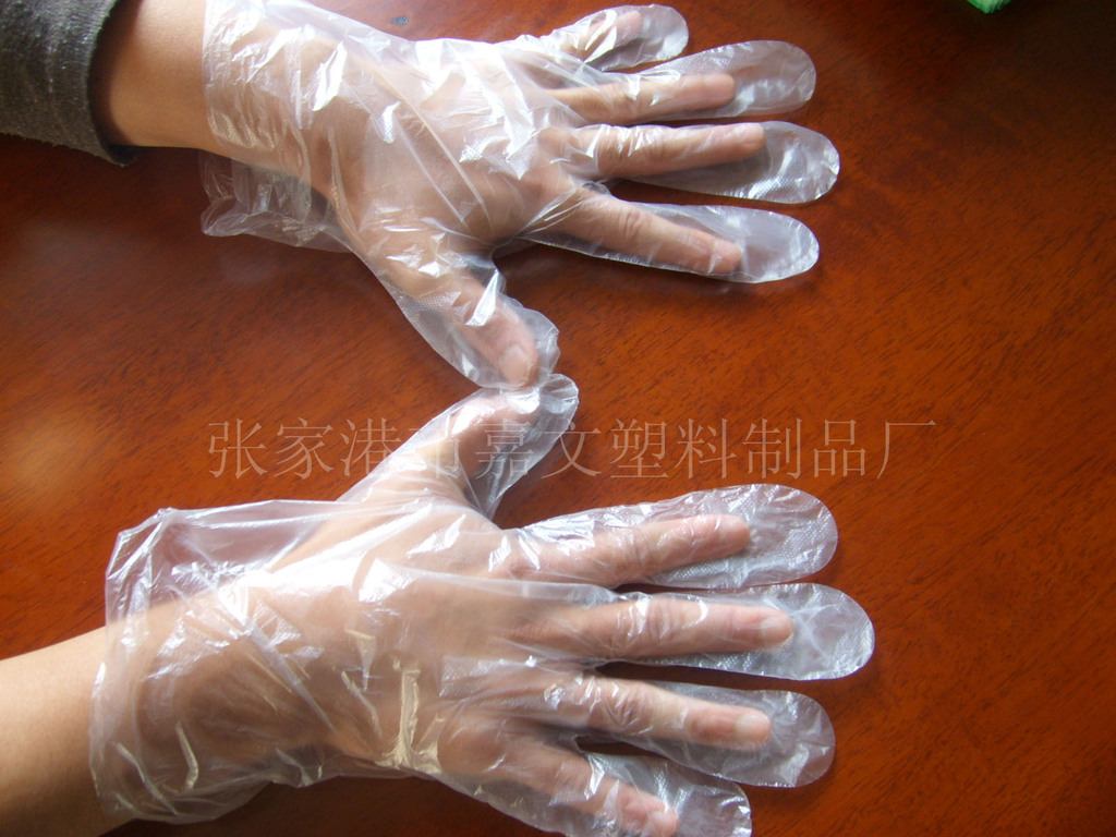 4)我公司生产的一次性PE手套,干净、方便、卫生、无毒无味,适用于家庭清洁,化学检验,机械园艺,食品、卫生及工农业防护;也可用于染发、护理洗涤,用餐时(如吃龙虾、大骨头)佩带可免去洗手之不便等。具有防水防油,防细菌,耐酸碱的功能。