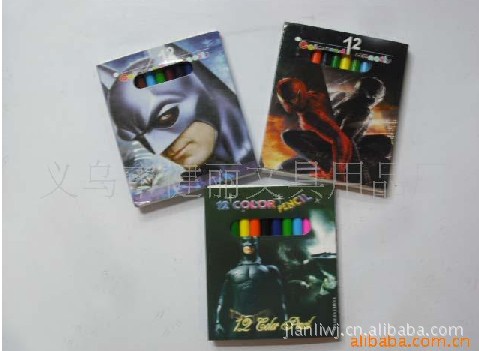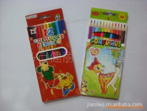 我们的笔颜色多种多样,有6色 12色 18色 24 色,可以供您选择,我们的包装也是多种多样 。我们有盒装 筒装 散装 等。图案有人物 风景 动物 卡通等。。我们也可以按照您的包装来定做。