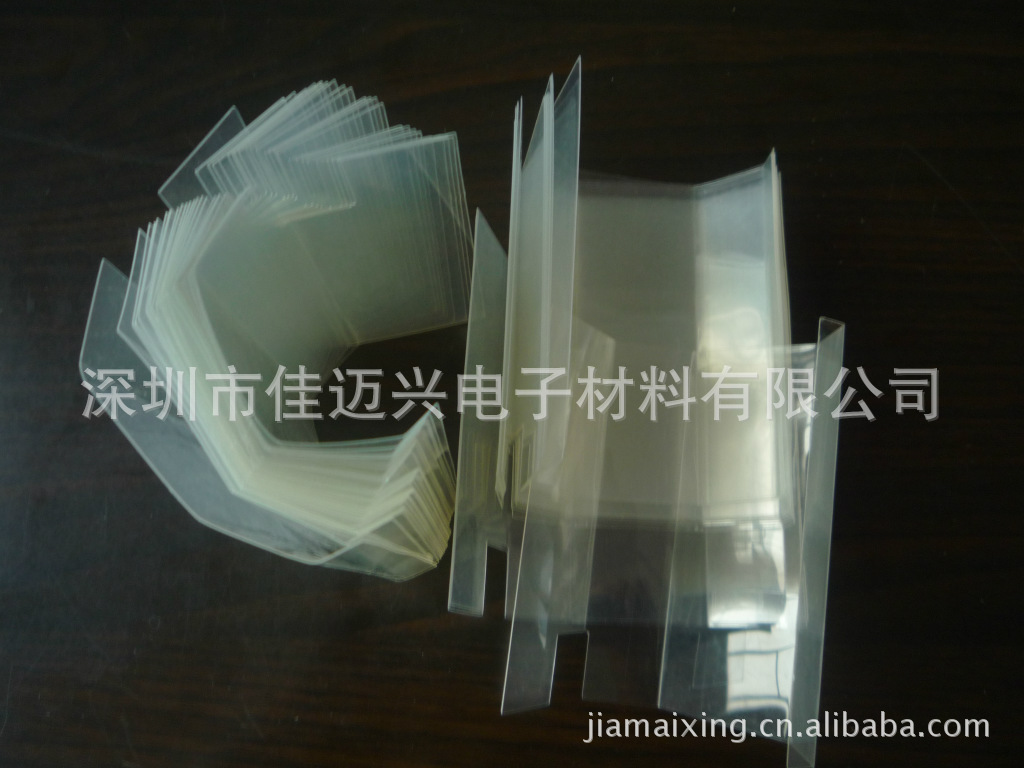 3、透明PET绝缘片(图) 耐高温胶片,因此拥有多种不同的名称:麦拉、PET、MYLAR、FILM、聚脂膜、有透明、半透明和乳白色供客户选择。由于其突出的绝缘强度,优异的加工性,广泛用于电源供应器、电源、防水电源、LED电源、马达、电缆、电器、电脑、商务机的绝缘、和铜、铝贴合可绝缘屏蔽。常用厚度(mm):0.05、0.075、0.1、0.125、0.188、0.25、0.35耐压(KV/MIL):> 5,阻燃性:94VTM-2,耐温性:> 150℃。