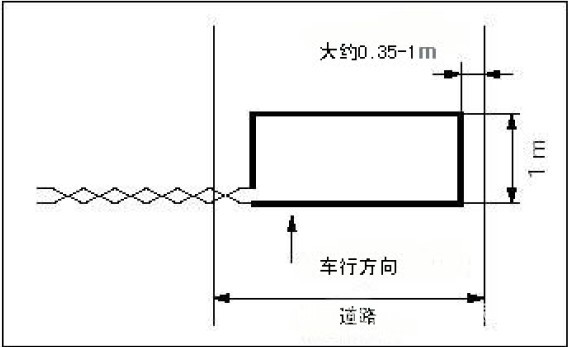 通常探测线圈应该是长方形。两条长边与金属物运动方向垂直,彼此间距推荐为1米。长边的长度取决于道路的宽度,通常两端比道路间距窄0.3米至1米。