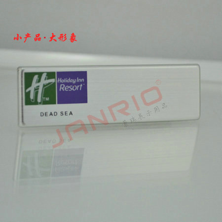 我公司为自设工厂,自有品牌(JANROI),专注于中高端胸牌的研发与制作,常规亚克力胸牌1个起,铝合金胸牌10个起,加急24小时出货,代发快递! 产品材质涉及不锈钢、铝合金、金属、亚克力、ABS、PVC等多种材质,种类齐全,货期稳定,交货及时快速。 欢迎各省市同行、印刷厂、广告公司、文具公司、图文公司、装潢设计公司、酒店用品公司、软件公司、电脑公司、打字社、礼品公司、外贸公司、印刷设计公司、淘宝网店代理来图来样定做,更多款式和报价请咨询在线客服,索取样板盒及样品画册。 我公司可开机打正规报销发票,需开票请联系在线客服!________________________________________________________________产品描述型号: JR1045材质: 铝+ABS规格: 68*28mm & 70*20mm 佩戴:别针或者磁铁工艺:常规金银两色,其它颜色可定做,表面阳极处理,LOGO、姓名、职位、编号可插纸片或者丝印或者贴膜更换场所:高级写字楼、投资顾问公司、银行证券行业、国外高级酒店餐饮、星级物业管理公司________________________________________________________________联系方式手 机:18925209196电 话:0755-89675492 0755-36631213大宗批发业务QQ1:2355673190