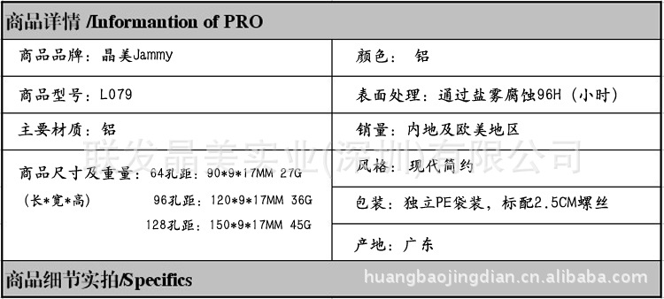 晶美家具五金拉手家装拉手抽屉拉手铝拉手双孔拉手铝本色L079-64