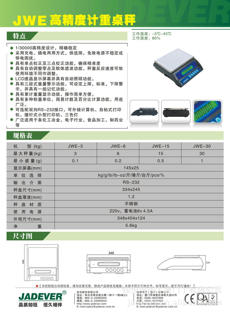 最大秤量(kg) | 3 | 6 | 15 | 30 |