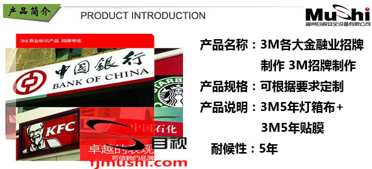 金融类招牌采用3M5年PIII灯布+3M年3630贴膜制作,使用3M灯布家透光贴膜完美结合这更加