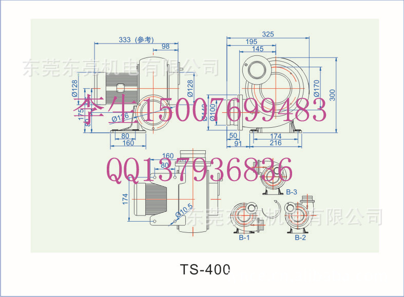 小型低压抽风机,东洸离心风机TS-400风机尺寸图: