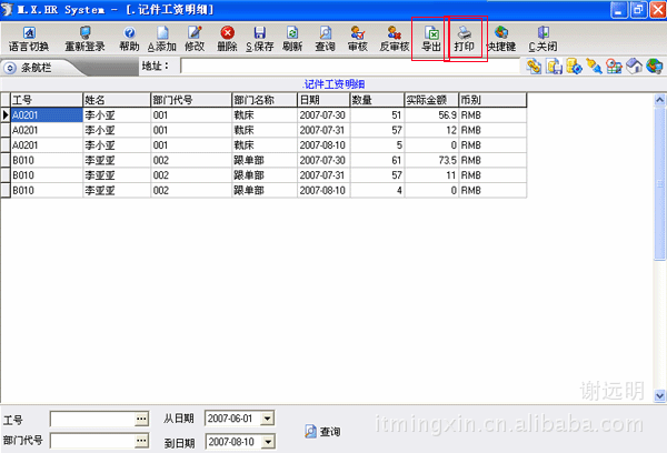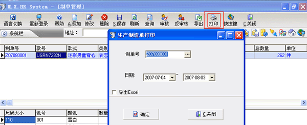 软件功能模块:订单、制单、个人记件、集体记件、记时记件、工资核算和统计、生产进度查询、报表中心!