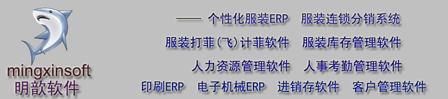 《明歆JM5服装鞋帽分销店管理系统》是明歆软件公司专门针对中小型服装鞋帽企业量身订制的进销存、财务一体化管理软件。适合目前流行的专卖店、品牌店和连锁店等经营模式。可以为企业提供信息处理和业务管理的一套全面解决方案。该软件充分考虑了服装鞋帽行业的款式、颜色、尺码、面料、流行性、季节性、连锁经营等行业经营管理特性,库存预警功能,能帮助企业降低库存风险;通过完善的进销存管理控制,实现企业经营信息的电脑全程记录、传递、分析和决策支持,全面帮助服装鞋帽企业提升运营效率和盈利能力。