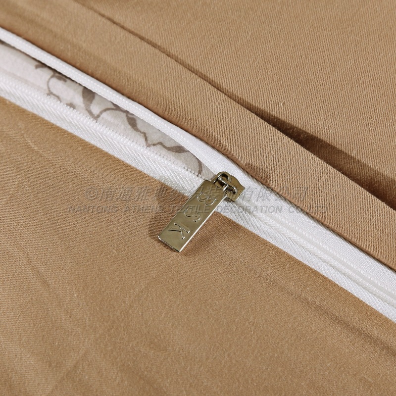 丝棉提花工艺(有光长丝和全棉精梳棉纱交织),面料纹理丰富,立体感强,花型颜色深邃,高雅脱俗,富有神秘感。丝棉面料,质感柔软适度,光洁度、吸湿性均较好,价位也比普通的印花面料高,属于高档产品。自2008年开始在星级酒店使用后,受到广大客户的欢迎。目前已经成为星级酒店的主流产品。现在很多家庭也逐步选择提花面料产品。我们将星级酒店的高品质提花面料引入家庭,在提花花型上,将酒店床品的特点和家纺产品的特点有机结合,开发出富有特色的酒店家纺产品,让广大消费者享用到星级酒店高品质产品。在尺寸和被套开口方面我们参照了家用床品的尺寸和开口方式。