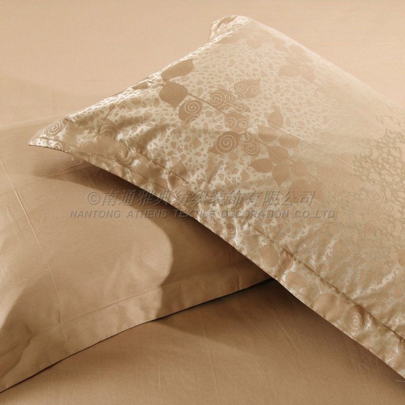 欢迎你浏览本款产品,我们是专业的酒店布草制造商,“酒店家纺”是我们的一个延伸产品,就是具有酒店风格特色花型和酒店面料品质的家纺产品,在做法和尺寸上按民用设计和制作。最近,酒店家纺大有流行的趋势,业内最具代表性的就是“康乃馨”旗下的“康尔馨”系列酒店家纺产品。此款四件套是典型的“简约酒店风格”,被套和枕套正面是采用丝棉提花面料,被套枕套反面和床单采用全棉精梳斜纹面料,枕套,被套采用飞边绣花工艺,婉约传情。细节让你领略精湛的工艺。欧式的贵族设计风格,传承经典。复杂精湛的绣花工艺,使其表面图案协调,并且产生层次感,不惜工时和成本,使其达到最佳的设计效果。欧式的圆角床裙式床单,款式大气经典。丝棉提花面料,光泽度好,手感细腻滑爽,柔软舒适,柔软盈亮,极具质感。欧式纹样尽显主人典雅尊贵气质。用雅典酒店特色家纺,把星级酒店带回家!