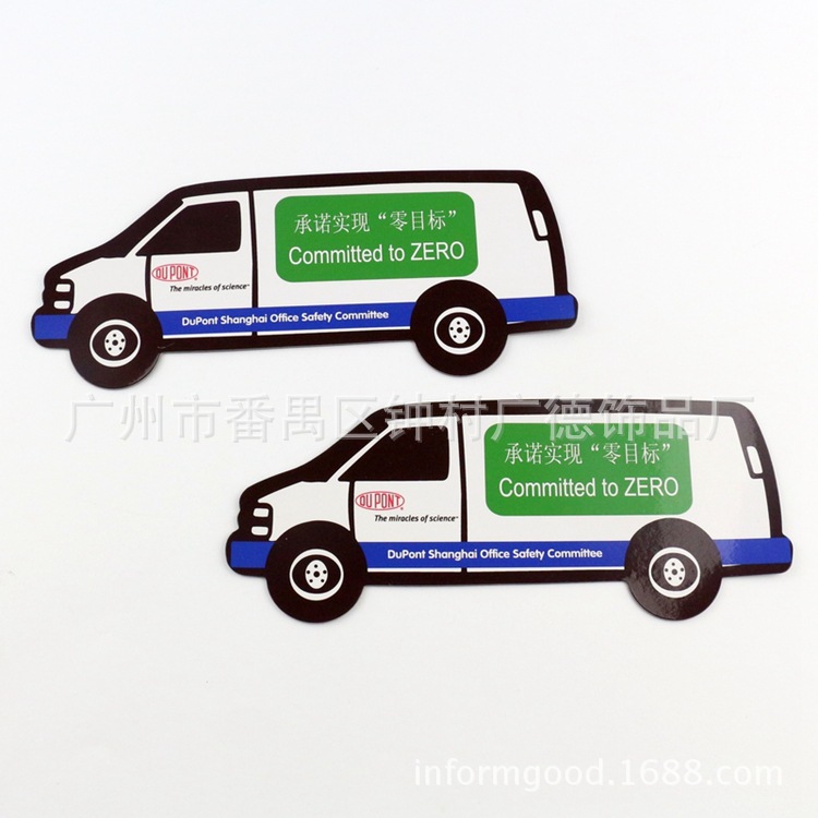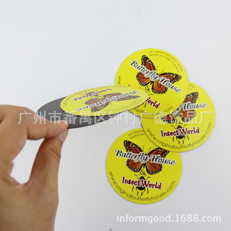 产品特点 | 1.表现形式多样,产品的尺寸,LOGO,厚度,形状等,都没有固定的规定,客户可以按照自己的需要制作产品。 2.产品的材料也可以任意变化,表面可以是PVC,铜板纸,PP合成纸等; 3.磁胶的厚度为:0.4-2mm,可按客户需要需要增加厚度可以在中间层增加EVA或者灰板纸。 |